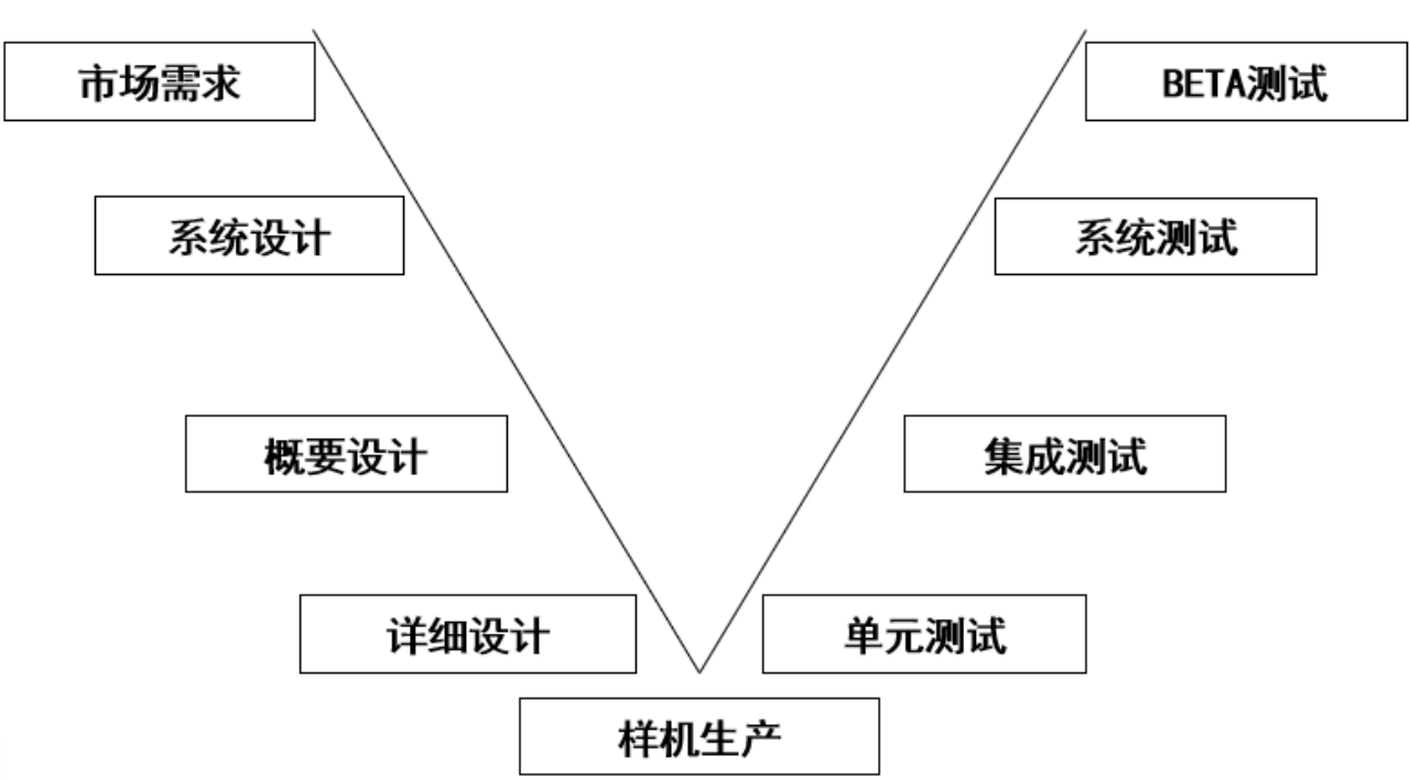 根據(jù)研發(fā)的具體活動(dòng)提煉出了產(chǎn)品開(kāi)發(fā)的“V”字模型。V字左側(cè)的每一個(gè)活動(dòng)都有右側(cè)對(duì)應(yīng)的測(cè)試手段來(lái)保證,每個(gè)測(cè)試的側(cè)重點(diǎn)不同,層層迭進(jìn)。