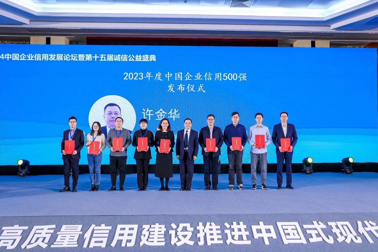 1月21日,2024中國(guó)企業(yè)信用發(fā)展論壇暨第十五屆誠(chéng)信公益盛典在北京成功召開。中國(guó)企業(yè)改革與發(fā)展研究會(huì)常務(wù)副會(huì)長(zhǎng)許金華在論壇上發(fā)布了2023年度中國(guó)企業(yè)信用500強(qiáng)和中國(guó)上市公司信用500強(qiáng)。