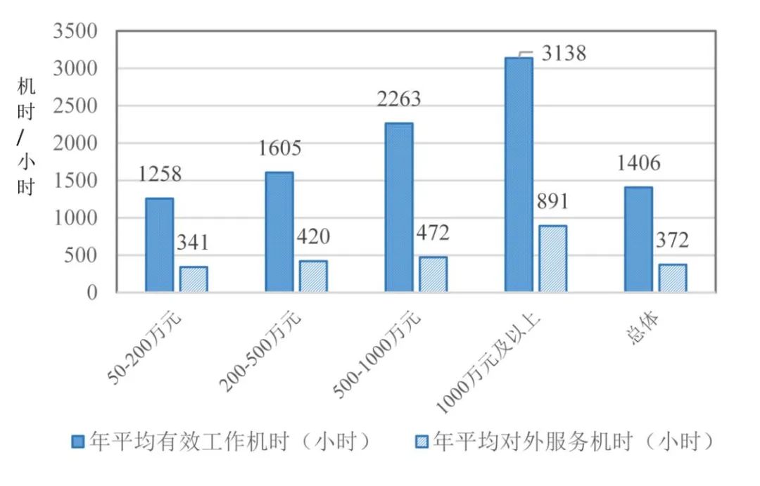 我國(guó)高校院所大型質(zhì)譜儀器,除涉密儀器外,均已納入重大科研設(shè)施和大型科研儀器國(guó)家網(wǎng)絡(luò)管理平臺(tái),實(shí)現(xiàn)了開(kāi)放共享。2021年,全國(guó)高校院所大型質(zhì)譜儀器年平均年有效工作機(jī)時(shí)1406小時(shí),平均每臺(tái)(套)對(duì)外部用戶提供服務(wù)372小時(shí)。1000萬(wàn)元及以上的大型質(zhì)譜儀器的年平均有效工作機(jī)時(shí)3138小時(shí),年平均對(duì)外服務(wù)機(jī)時(shí)達(dá)到891小時(shí),明顯于其他原值區(qū)間的質(zhì)譜儀器(圖4)。這不僅提高了精密儀器的利用效率,也有助于降低其他科研機(jī)構(gòu)的研發(fā)成本。