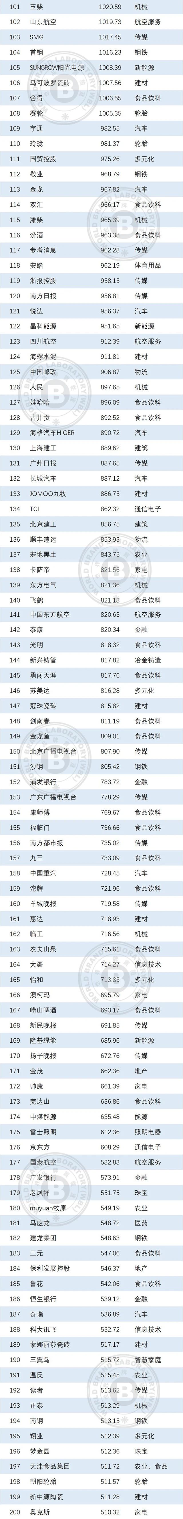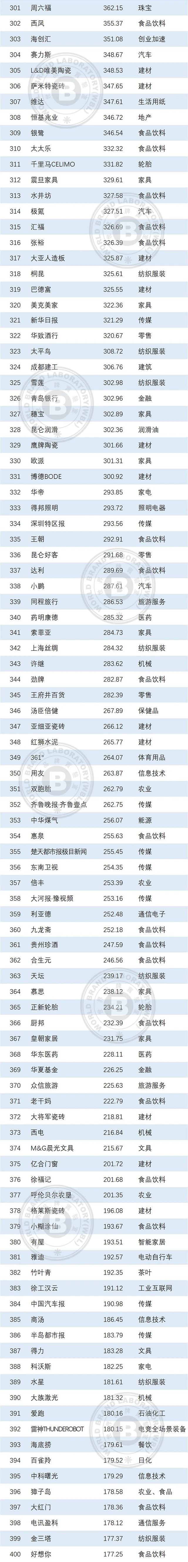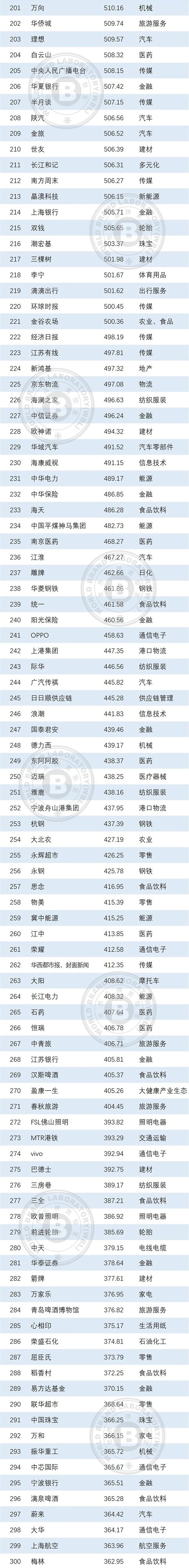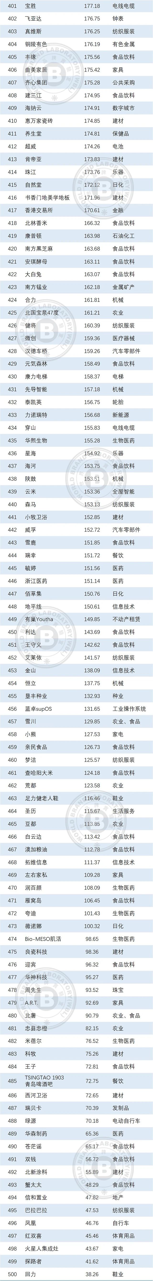 本年度《中國(guó)500最具價(jià)值品牌》排行榜中,共有來(lái)自食品飲料、輕工業(yè)、建材、傳媒、紡織服裝、醫(yī)藥、機(jī)械等在內(nèi)的24個(gè)相關(guān)行業(yè)的品牌入選。其中食品飲料業(yè)依然是入選品牌最多的行業(yè),共有80個(gè)品牌入選,占總?cè)脒x品牌數(shù)的16.00%;入選數(shù)量位居第二到第五的行業(yè)分別是輕工(41個(gè))、通信電子IT(39個(gè))、建材(36個(gè))、傳媒(32個(gè))。在衡量品牌的忠誠(chéng)度時(shí),世界品牌實(shí)驗(yàn)室參考了我信品牌(iTrust Rating)的評(píng)級(jí)數(shù)據(jù);在衡量品牌的領(lǐng)導(dǎo)力特別是ESG(環(huán)境、社會(huì)和治理)評(píng)分時(shí),參考了超級(jí)財(cái)經(jīng)(SuperFinance)的ESG數(shù)據(jù)庫(kù)。同時(shí)還借用了低碳國(guó)際(Carboncare International)對(duì)品牌企業(yè)碳排放的計(jì)量,以推動(dòng)品牌添加“碳排放評(píng)分”標(biāo)簽。