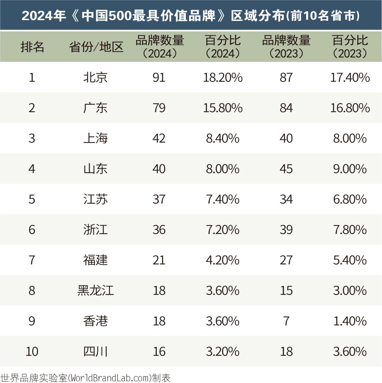 據(jù)世界品牌實(shí)驗(yàn)室的專家組分析,一個(gè)區(qū)域的競(jìng)爭(zhēng)實(shí)力,主要取決于其比較優(yōu)勢(shì),而品牌效益直接影響著地區(qū)比較優(yōu)勢(shì)的形成和發(fā)展。品牌是一個(gè)地區(qū)發(fā)展的重要標(biāo)志,品牌與區(qū)域經(jīng)濟(jì)的增長(zhǎng)是相互聯(lián)動(dòng)的。從本屆《中國(guó)500最具價(jià)值品牌》區(qū)域分布來(lái)看,北京有91個(gè)品牌入選,名列第一,因?yàn)橼A利能力強(qiáng)的央企總部集中在北京;廣東和上海分別有79個(gè)和42個(gè)品牌入選,位居第二和第三。根據(jù)入選品牌影響力范圍大小,可按照全國(guó)性、世界性品牌進(jìn)行劃分。榜單中具有全國(guó)范圍影響力的品牌有431個(gè),占86.20%;具有世界性影響力的品牌數(shù)為69個(gè),占13.80%。