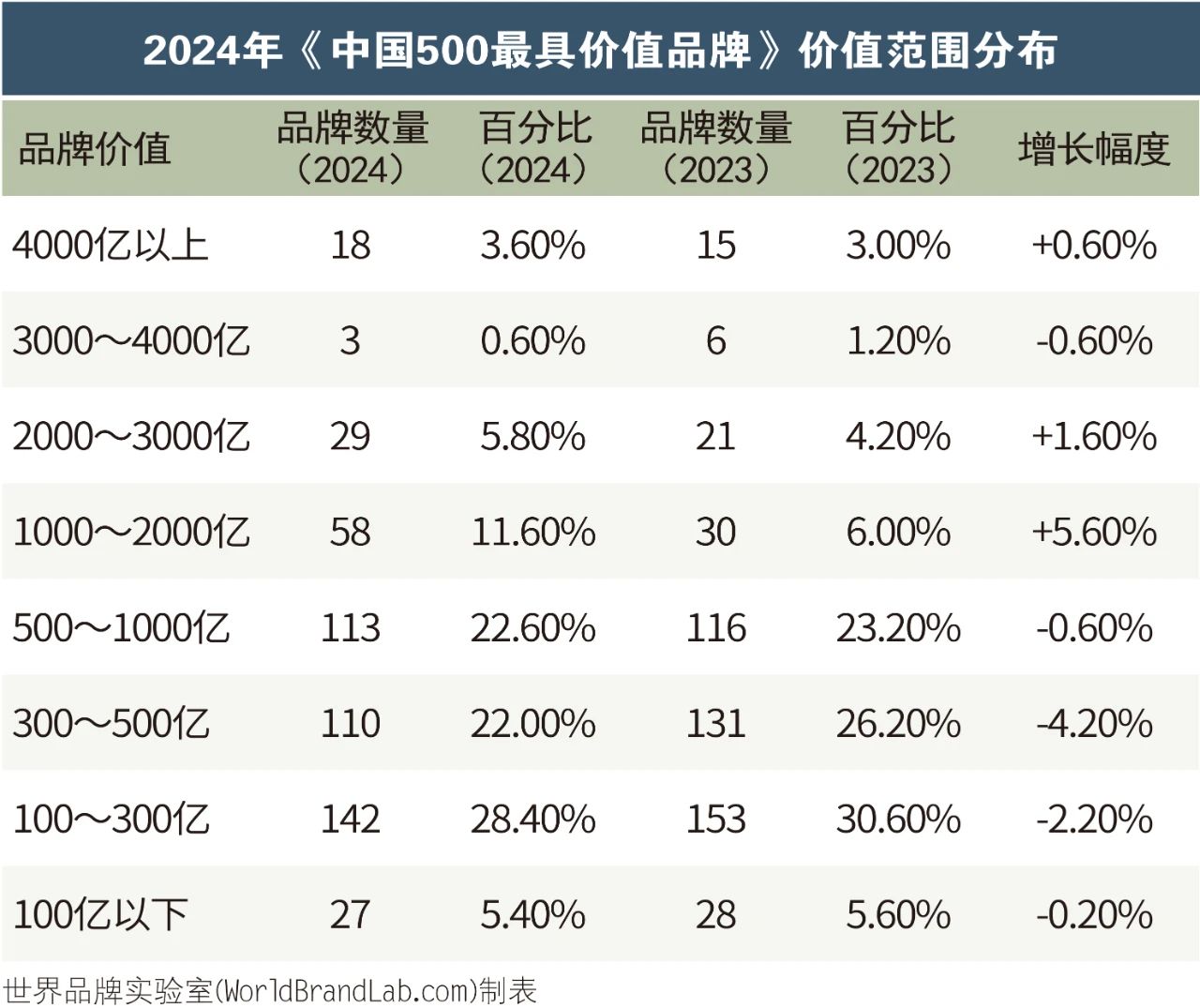 2024年《中國(guó)500最具價(jià)值品牌》的總價(jià)值為38.57萬(wàn)億元,比去年增加4.24萬(wàn)億元,增幅為12.35%。世界品牌實(shí)驗(yàn)室學(xué)術(shù)委員會(huì)主席、牛津大學(xué)(Oxford)營(yíng)銷學(xué)榮譽(yù)教授斯蒂芬·沃格(Steve Woolgar) 博士表示:“在過(guò)去的20多年中,我目睹了中國(guó)品牌的快速成長(zhǎng),有的已經(jīng)具有強(qiáng)大的世界影響力,這些品牌包括國(guó)家電網(wǎng)、海爾、中化、華潤(rùn)、中國(guó)南方電網(wǎng)、保利、河鋼、中國(guó)華電、五糧液、徐工、青島啤酒、中國(guó)國(guó)航、北大荒、東方電氣、通威、波司登、飛鶴、中國(guó)航油、恒力、協(xié)鑫、圣象、九牧、長(zhǎng)虹、雙星輪胎等。”