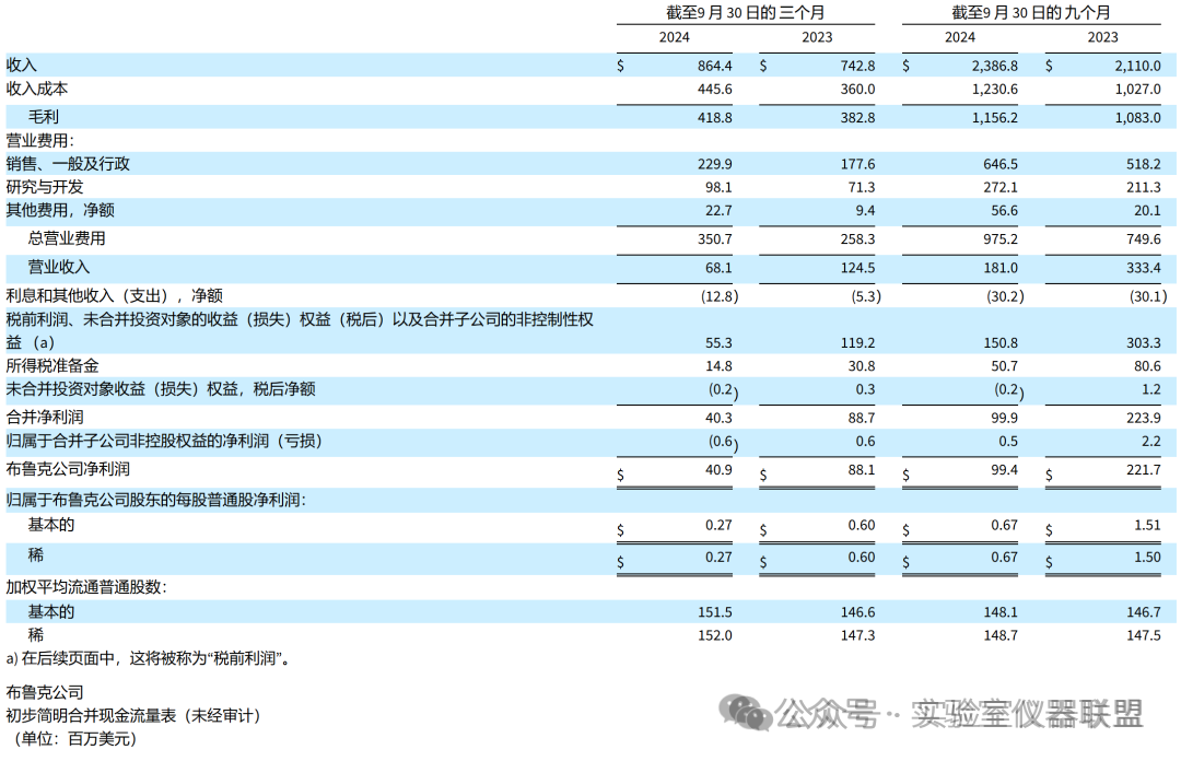 布魯克總裁兼首席執行官 Frank H. Laukien 評論道:“布魯克在第三季度和今年迄今的 CER 收入再次實現了兩位數的同比增長,并且有機收入增長高于市場水平。這證明了我們的項目加速轉型,以及我們推動戰略收購改進的卓越運營流程。我們在第三季度實現了連續的營業利潤率改善,我們預計第四季度的利潤率將進一步連續改善,同時 CER 收入也將實現兩位數的增長。”