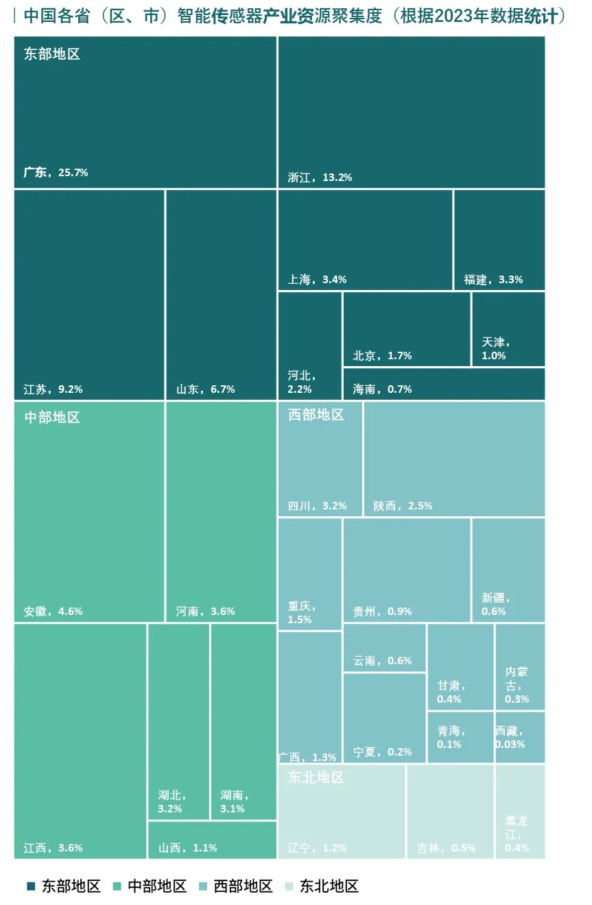 廣東:產業資源占據全國首位,“十五五”時期將形成以代工為優勢、以應用為引領、上下游協同發展的格局。2022年底廣東建設了國內首條12英寸MEMS智能傳感器晶圓代工產線,并已成功投產。同時,廣東在醫療設備、無人機、智能機器人、新能源汽車等下游應用領域企業資源也較為豐富。預計“十五五”時期,廣東將依托智能傳感器代工制造優勢,加快推動面向本地下游的行業應用,在智能傳感器產業鏈上下游協同發展方面有望成為全國標桿。