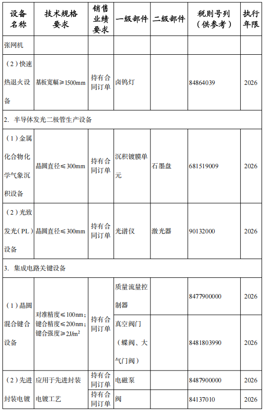 2025版部分涉及裝備、產(chǎn)品和材料如下: