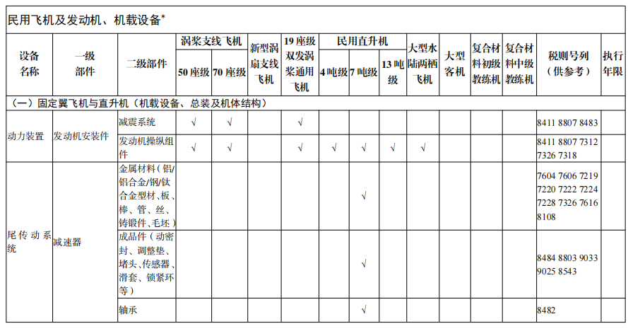 3. 民用飛機及發(fā)動機、機載設(shè)備*3.1 尾傳動系統(tǒng):