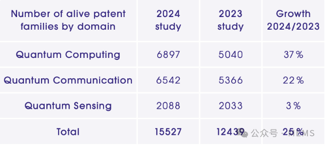 2023年和2024年全球量子技術(shù)專利族按技術(shù)類型細(xì)分的總量和增長(zhǎng)率
