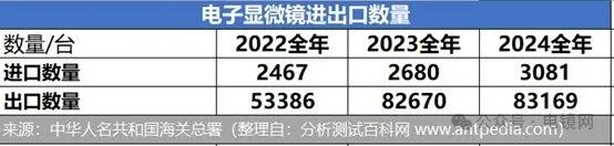 2024 年中國電子顯微鏡進出口盤點:繼續增長超1