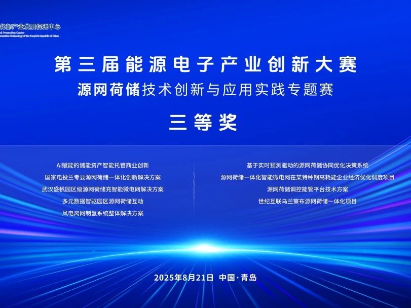 近日,第三屆能源電子產(chǎn)業(yè)創(chuàng)新大賽源網(wǎng)荷儲(chǔ)技術(shù)創(chuàng)新與應(yīng)用實(shí)踐專題賽決賽暨典型作品交流會(huì)在山東青島舉辦。