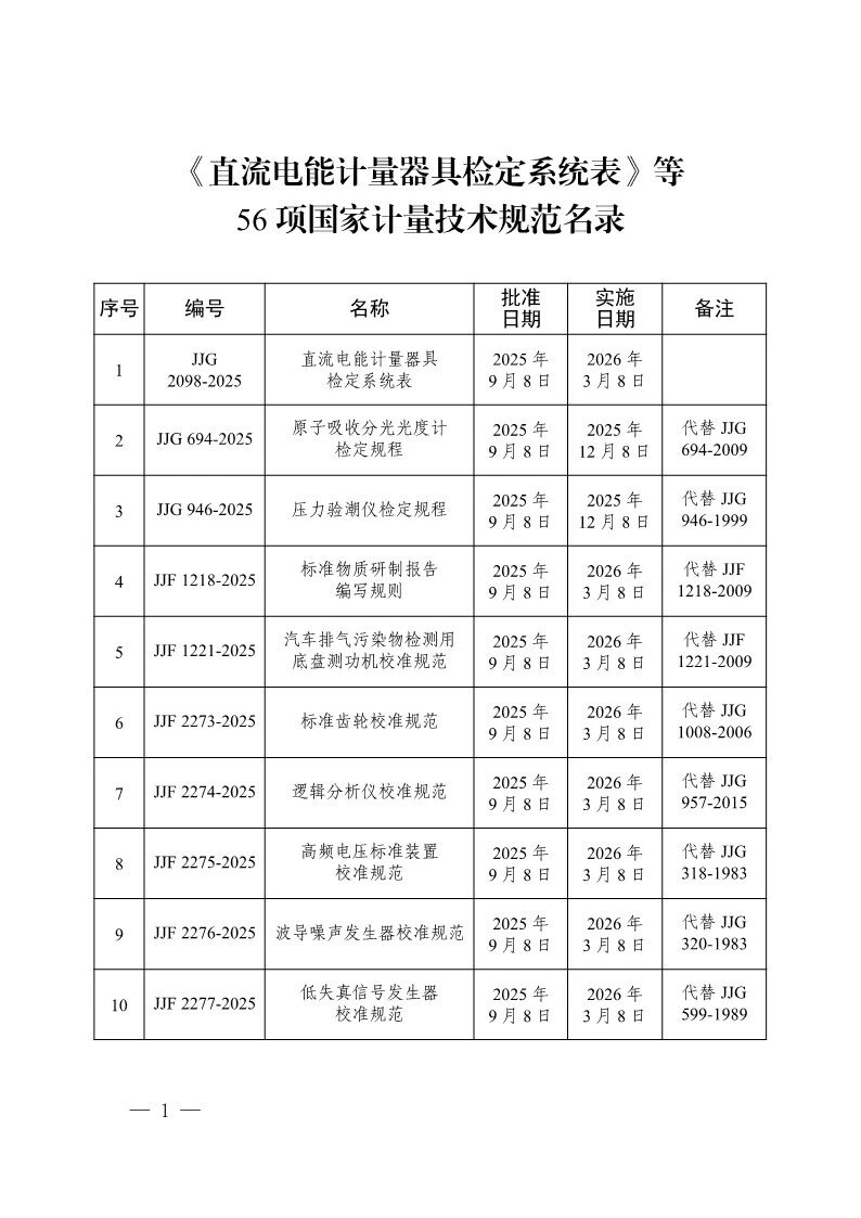 根據(jù)《中華人民共和國(guó)計(jì)量法》有關(guān)規(guī)定,批準(zhǔn)《直流電能計(jì)量器具檢定系統(tǒng)表》等56項(xiàng)國(guó)家計(jì)量技術(shù)規(guī)范發(fā)布實(shí)施,現(xiàn)予公告。