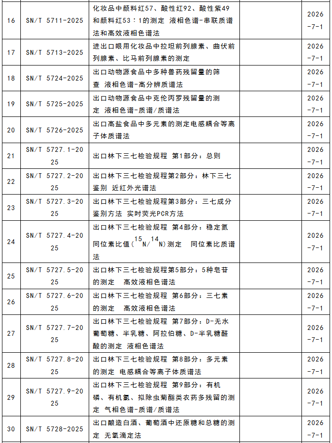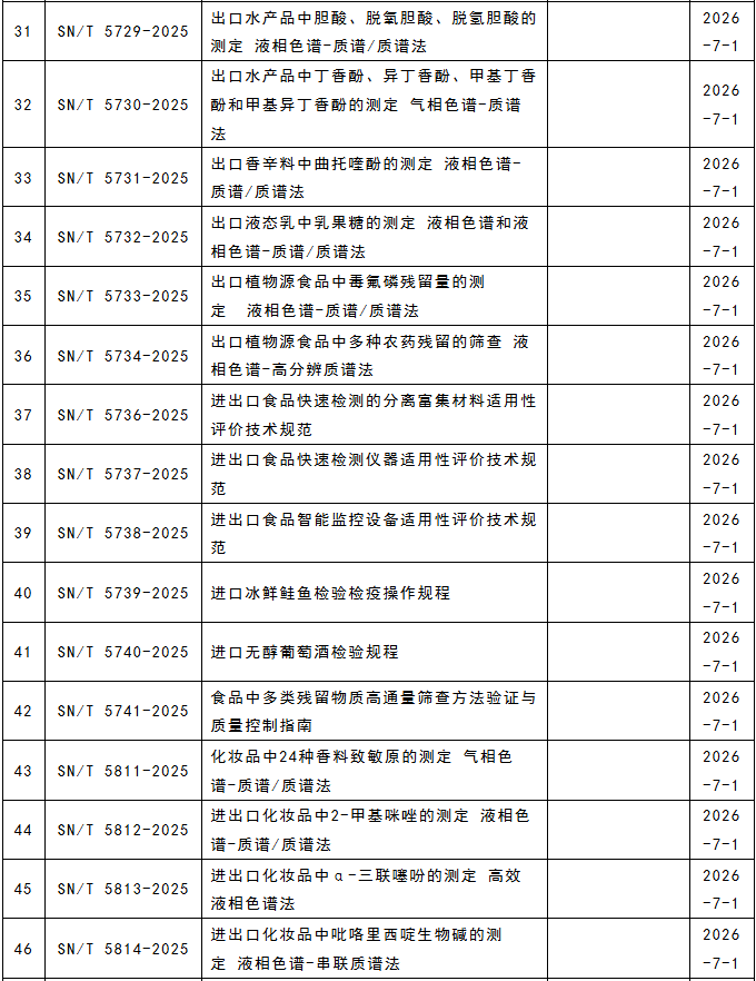 這117項行業標準涵蓋食品、化妝品、藥材等領域,涉及液相色譜串聯質譜法、液相色譜-質譜/質譜法、高效液相色譜法、電感耦合等離子體質譜法、近紅外光譜法、實時熒光PCR方法等檢測方法。