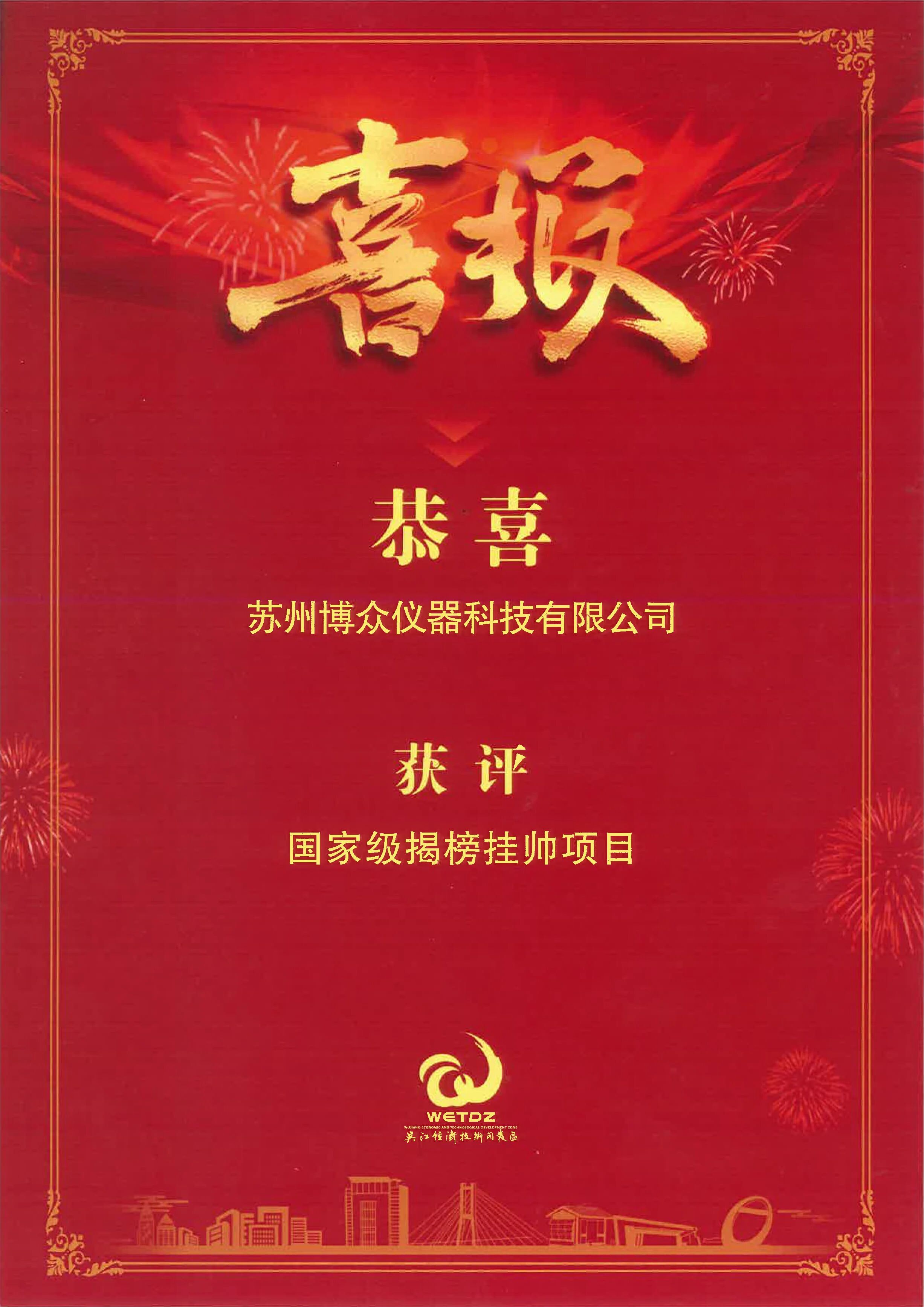 3月3日,2026 年吳江開(kāi)發(fā)區(qū)經(jīng)濟(jì)高質(zhì)量發(fā)展暨一季度“開(kāi)門紅”動(dòng)員大會(huì)隆重召開(kāi)。作為“十五五”開(kāi)局之年的關(guān)鍵部署會(huì)議,本次大會(huì)聚焦產(chǎn)業(yè)攻堅(jiān)與企業(yè)賦能,博眾儀器受邀參會(huì),并憑借國(guó)家級(jí)揭榜掛帥項(xiàng)目獲現(xiàn)場(chǎng)表彰,成為大會(huì)亮點(diǎn)之一。區(qū)委書記孫建江出席會(huì)議并發(fā)表重要講話。